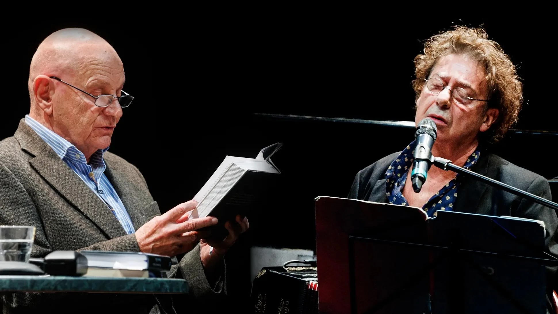 A színpadon egy énekes, egy Európai Filmdíjas rendező, egy filmzeneszerző, egy író-költő, egy jazz zongorista, egy dalszövegíró, egy zeneszerző, egy színházigazgató, egy dalszerző, egy forgatókönyvíró és egy underground ikon – azaz a két előadó: MÁSIK JÁNOS és BEREMÉNYI GÉZA. És három hangszer.